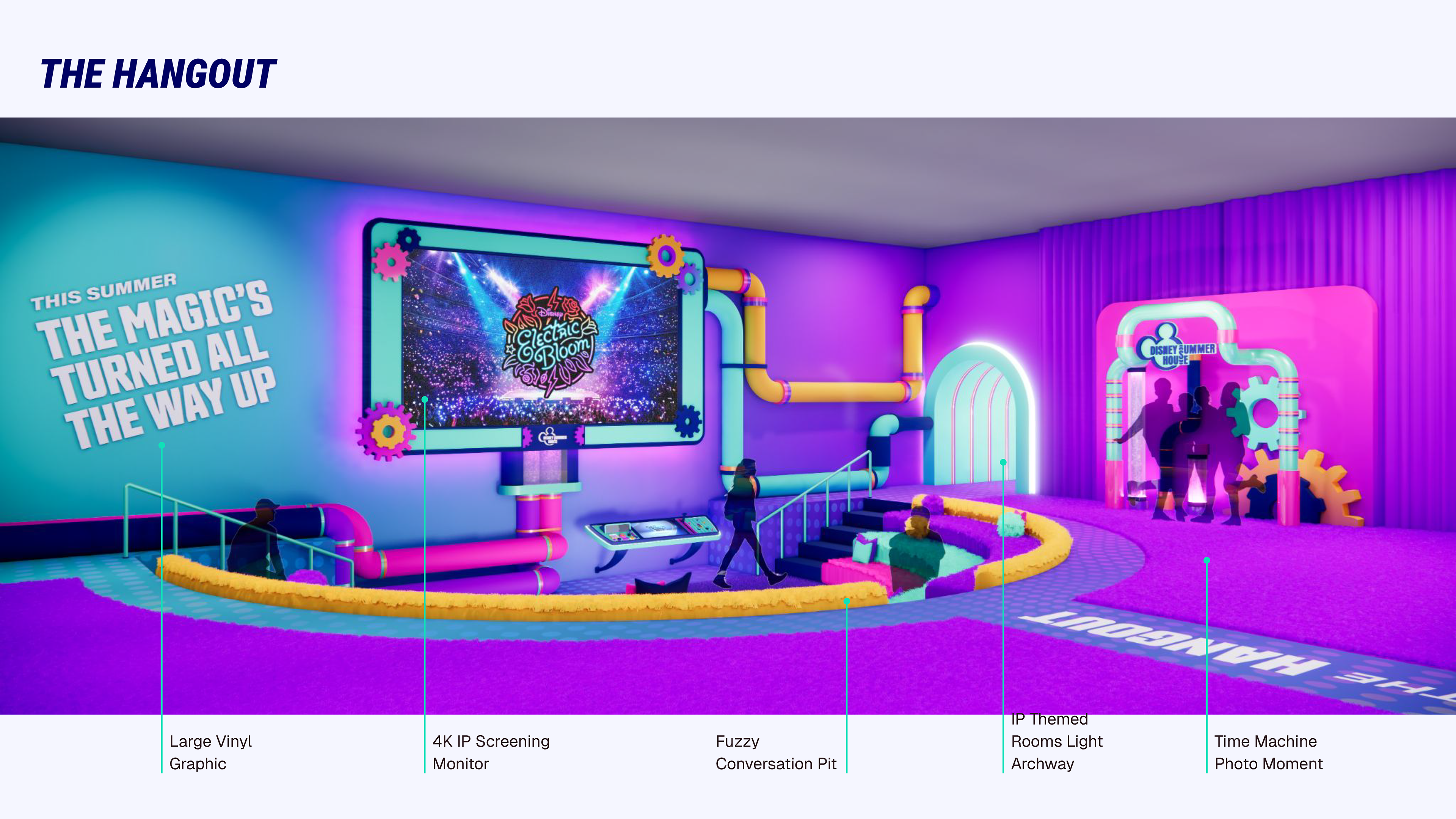 Primary roles included design, modeling and rendering of "The Hangout" space and "The Swag Stand".