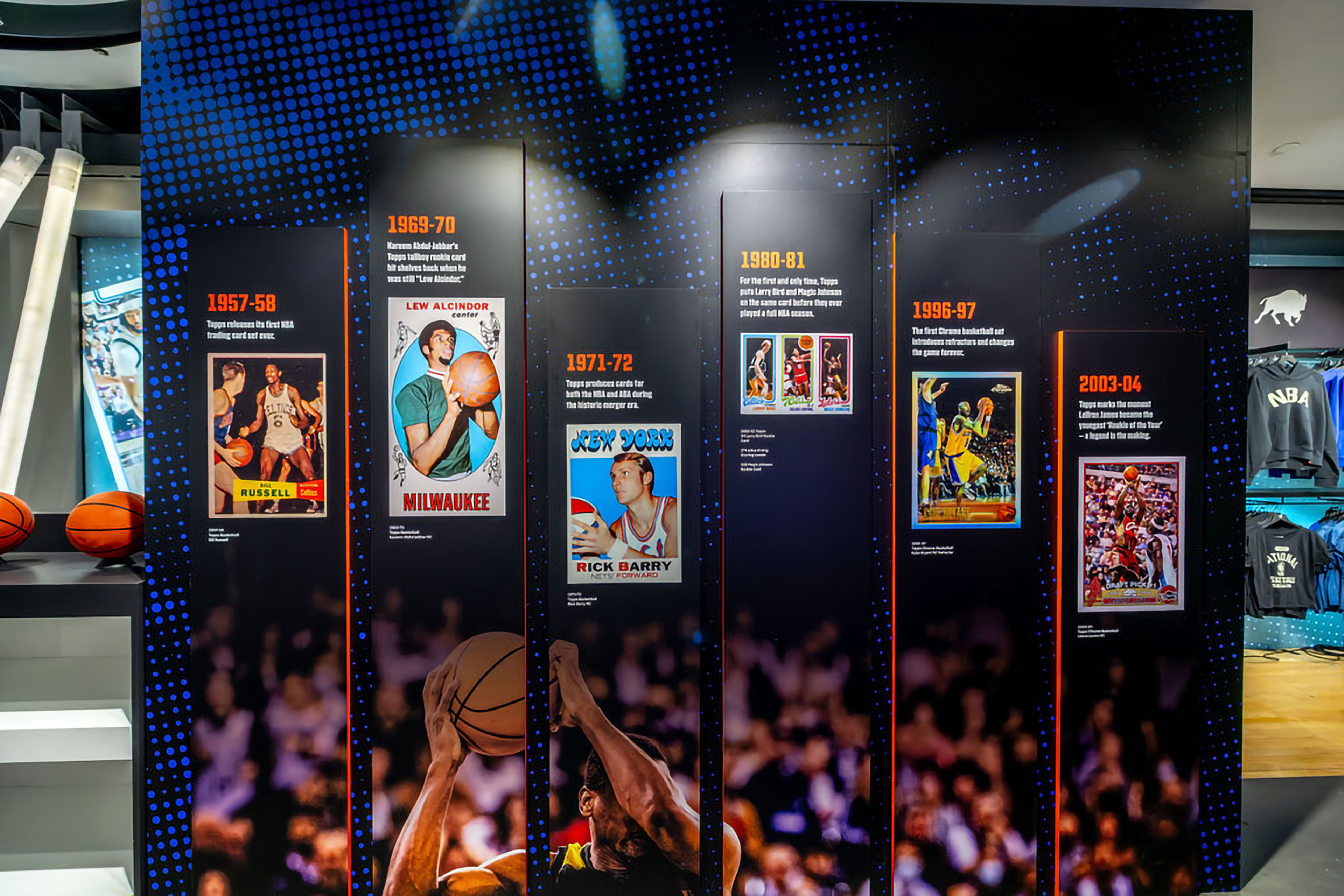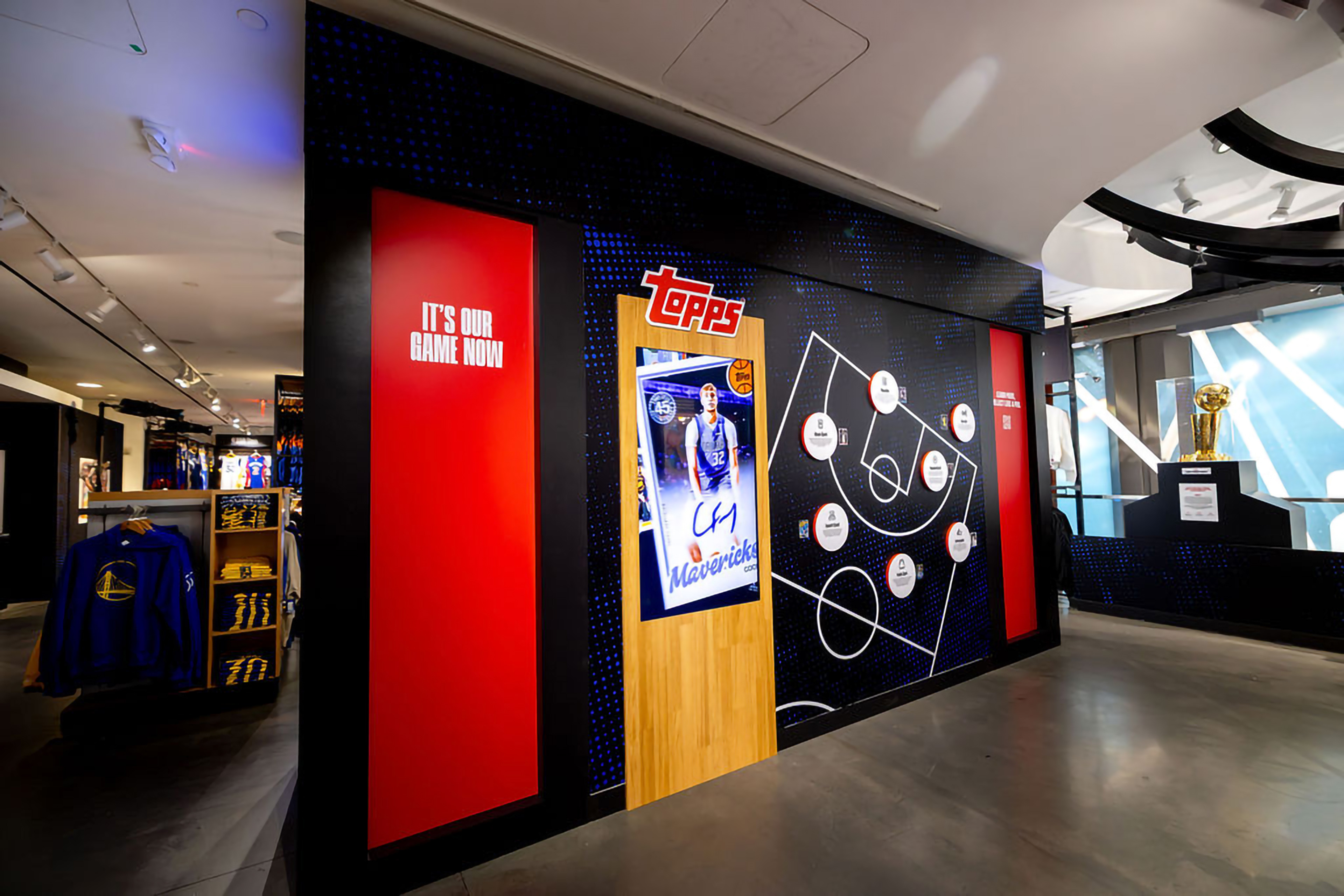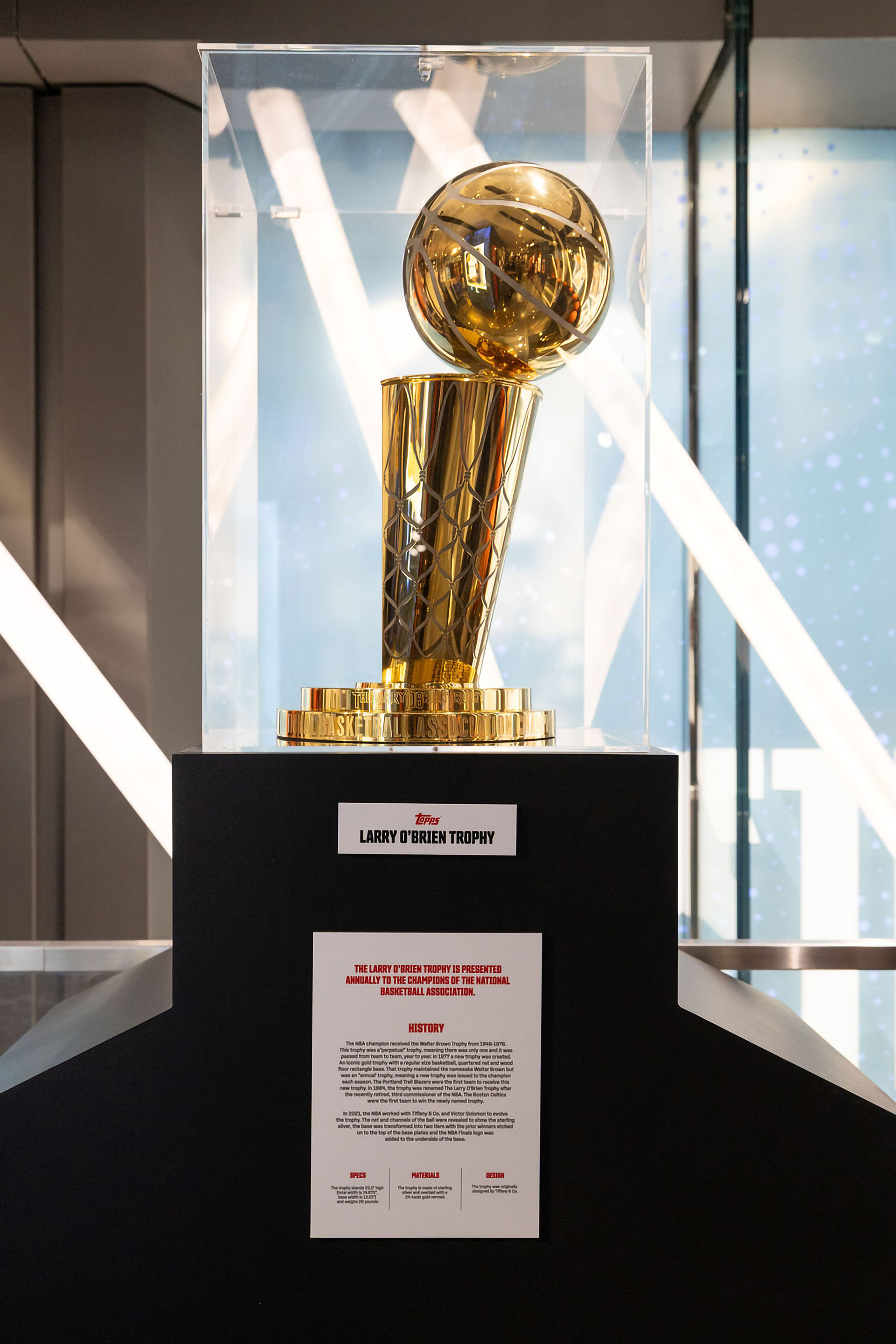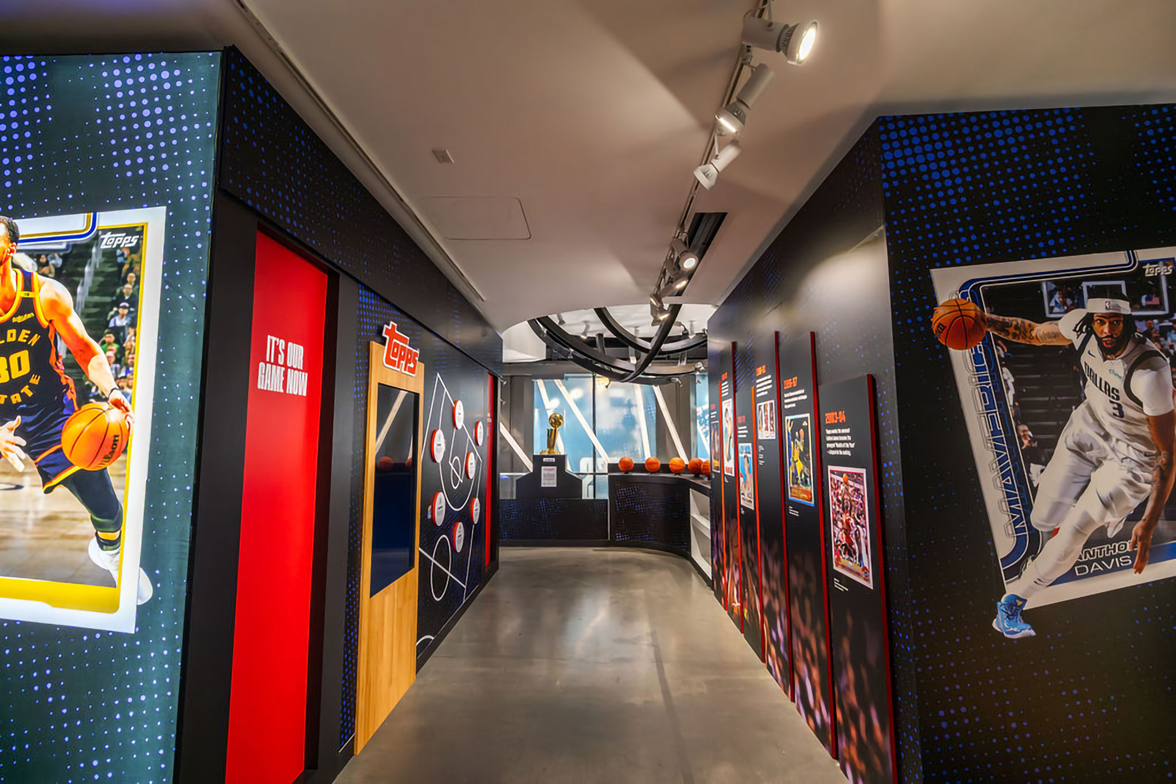Learn all about the history of Topps trading cards, the journey of a collector over time, and view displays of player-worn jerseys and the Larry O'Brien Championship Trophy.